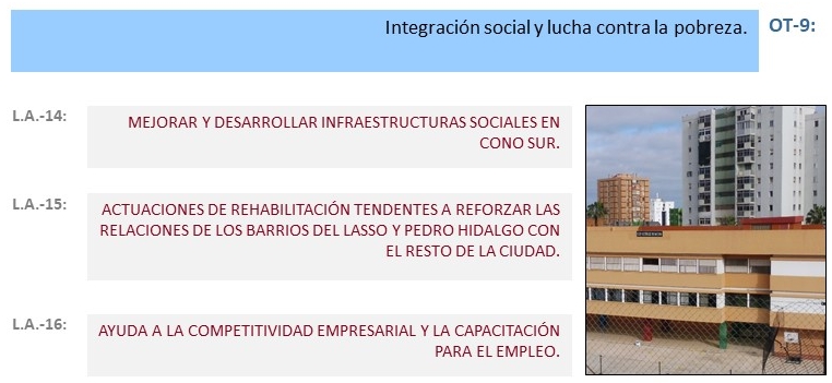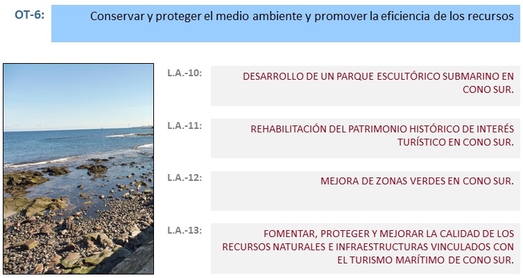 A través de la financiación de los Fondos FEDER y la aportación municipal, se programan 16 líneas de actuación dentro de las cuales pueden desarrollarse varias decenas de operaciones que persiguen la sostenibilidad integral y la configuración de un espacio urbano con un protagonismo imprescindible para entender la ciudad actual. Se hace especial hincapié en la mejora de la calidad ambiental y funcional como entorno costero y residencial, en el amplio conocimiento e identificación con su patrimonio, su identidad social y sus recursos territoriales, en la modernización de su espacio público, en la diversificación de su tejido económico y la implicación directa de la población en su desarrollo durante las próximas décadas.