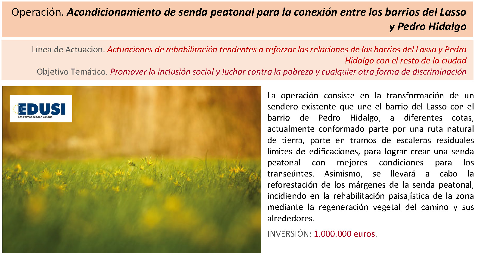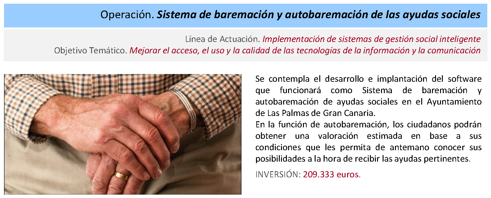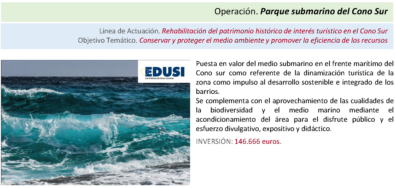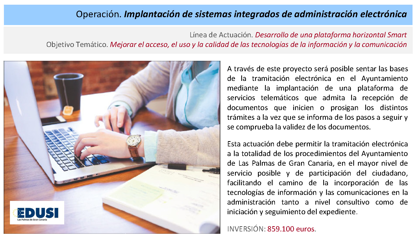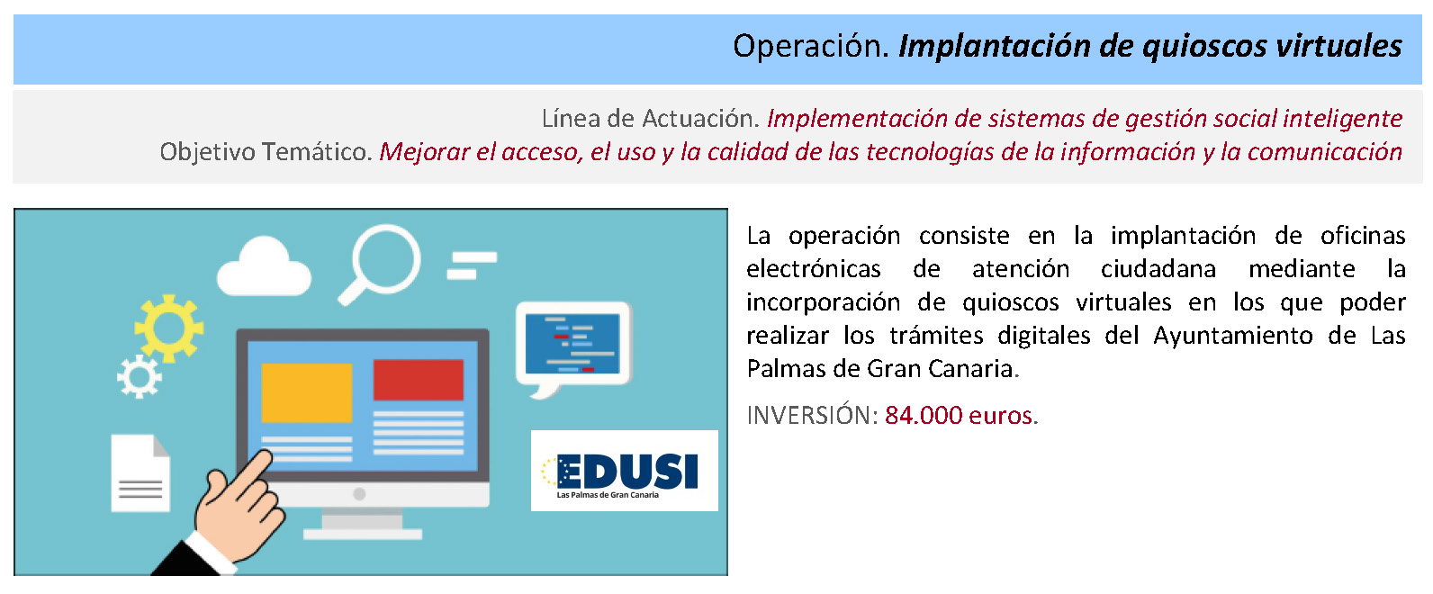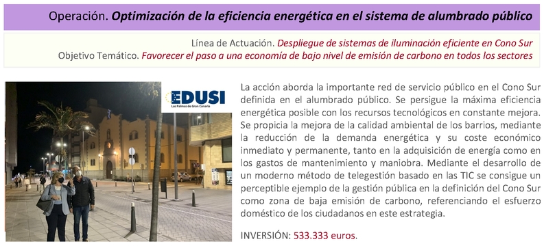 El desarrollo de las operaciones constituye la materialización de los objetivos previstos en la Estrategia DUSI para el Cono Sur de Las Palmas de Gran Canaria. Atendiendo fundamentalmente a las determinaciones del Manual de Procedimientos en vigor, se definen una estructura y un protocolo de gestión y seguimiento a través de los que se implementa esos objetivos en el territorio.