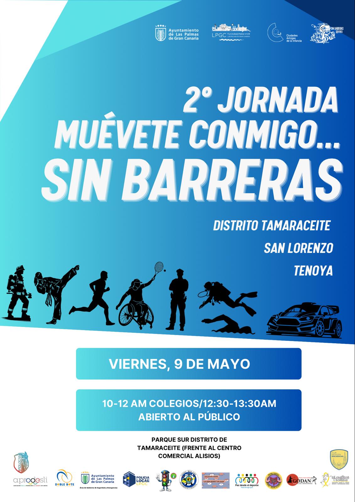 Tras el gran éxito de participación y acogida en la edición anterior, el Ayuntamiento de Las Palmas de Gran Canaria, a través de la Concejalía del Distrito Tamaraceite - San Lorenzo - Tenoya que dirige la concejala Esther Martín y junto a la colaboración de Sin Barreras Driving, organiza la "II Jornada MUÉVETE CONMIGO… SIN BARRERAS", que se celebrará el próximo viernes, 9 de mayo, en el Parque Tamaraceite Sur (frente al Centro Comercial Alisios).